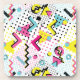 Karo aus diesem lustigen Memphis-Stil, charakterisiert durch fette Farben, geometrische Formen und skurrile Designs.