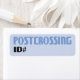 Die Identifikationsnummer des Postübergangs ist mit dem Aufkleber für die Registrierung der Postübergangs-Postkarten zu versehen. Das Wort Postkreuzung befindet sich oben in einem Vintagen Schriftart in blau und der Leerzeichen für die ID-Nummer ist unten.