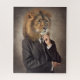 Dieses Ausrüstungsbeschreibungen ein Porträt eines Löwes in einem Anzug und in einer Krawatte.
