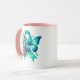 POTS Warrior, türkisfarbenes Bewusstseinsband mit Blume und Schmetterlingskaffee-Tasse.