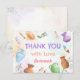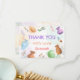 A bright and playful thank you card featuring watercolor pottery pieces, paint brushes, palettes, and colorful art supplies. Designed for a pottery painting or art-themed birthday celebration, this card is perfect for sending a heartfelt note after a creative party.