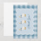 A thank you card that looks as considered as the gifts it acknowledges. This powder blue gingham thank you card features three bow-tied geese in the same scalloped frame as the matching invitation — cohesive, charming, and blank inside so you can write exactly what you want to say. The muted blue and white buffalo check linen pattern coordinates beautifully with the full baby shower suite. Order alongside the invitation so they're ready to go the moment the last gift is unwrapped.