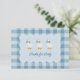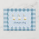 Tuck this books for baby insert into every invitation envelope and start the little one's library before they even arrive. The front features three bow-tied geese in the same scalloped frame as the invitation suite, with the poem on the back asking guests to bring a book instead of a card and sign it so the memory lasts. The muted blue and white buffalo check linen pattern ties seamlessly into the full collection. Pairs with the matching invitation, RSVP card, and details card for a complete, coordinated enclosure set.