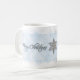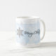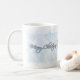Ein Digitalbcon-Design mit einem pulvrigen Blau- und Weißmotiv mit einer Vielzahl von individuellen Bildern, Formen, Mustern, Stilen und Schriftart in dieser einzigartigen "Frohen Weihnachten"-Tasse. Dieses farbenfrohe und attraktive Design wird mit der Prägung "Frohe Weihnachten" in Silber ergänzt und macht ein schönes Geschenk für die Familie, Freunde oder als Geschenktausch im Büro! Was für eine bessere Art, "Frohe Weihnachten" zu sagen!