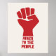 Dieses Kunstwerk zeigt eine rote Faust erhöht und die Worte Power zu den Menschen.