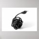 Ein Power-Kabel, das in eine Kugel abgeschieden auf weißem Hintergrund eingewickelt ist, wobei der Endpunkt aus der Kugel scharf fixiert ist.