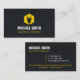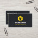 Eine moderne, minimalistische und berufliche Visitenkarte mit einem Logo einer Silhouette eines Power-Steckers über einer hexagongelben Form. Ein Textureffekt für Hintergrund. Ideal für Elektriker und für Installateure von elektrischen Leitungen und Beleuchtungseinrichtungen. Personalisieren Sie Ihre Geschäftsinformationen in den Vorlagen, die Sie einfach lesen können.