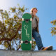 Eine Abbildung des Weißen Pferdes auf dem Uffington Castle Berkshire, Großbritannien in Creme vor einem grünen (englischen Renngrün) Hintergrund. Das Uffington Castle White Horse ist die älteste Kreidefigur auf den Britischen Inseln und könnte über 3000 Jahre alt sein. Damals hatten sie wahrscheinlich keine Rennautos, aber Skateboarding war möglich gewesen. :