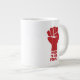 Dieses Kunstwerk zeigt eine rote Faust erhöht und die Worte Power zu den Menschen.