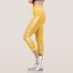 Die hellgelben Leggings sind mit den Worten "Powered by Pflanze" versehen, die auf beiden Beinen mit kleinen stilisierten Blätter und weißen Streifen geschmückt sind.