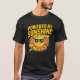 Powered by Sunshine - Öko-Friendly T-Shirt Eine dynamische Cartoon-Sonne mit Sonnenbrille und flackernden Solarpaneelarmen mit Blitzschrauben dahinter. Fett, Comic-Stil sagt: "Powered by Sunshine". Helle, energetische Palette: Gelb, orange und elektrisch blau auf dunklem Himmelshintergrund. Appelle an Öko-bewusste Käufer, Solarbranche und Nachhaltigkeitsfans.