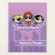 Die Powerpuff-Girls | Blossom, Blasen und Buttercup auf einer lila Wolke mit "Powerpuffgirls" geschrieben unten.