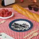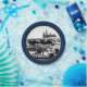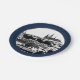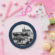Pappteller: Prag Panorama digital in art zeichnend - faszinierender Blick auf den historischen Teil der Stadt über die Moldau, mit dominanter St. Vitus Kathedrale auf dem Hügel, umgeben von "Hradcany" - Prager Burg in Schwarz-Weiß. Historische Gebäude am Ufer, eine Fähre, die Sie unter der Karlsbrücke bis nach Troja bringen kann, wo sich auch der Prager Zoo befindet. Reise-/Architekturreihe - Prag, Tschechische Republik. Original Fotografie/Kunst/Design von work4dream.
