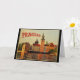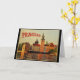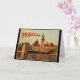 Dieses charmante Vintage Aussehen von Prag in der Tschechischen Republik zeigt Gebäude am Wasser mit einem Retrotitel von Prag in der oberen links Ecke.