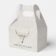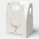 Lassen Sie sich von unserer rustikalen Gastgeschenk Hochzeit-Box verzaubern. Mit den Namen der Braut und des Bräutigams und dem Hochzeitstag in einem eleganten Western-Schriftart, ist diese Schachtel mit einem atemberaubenden Aquarellkuh Langghornskull mit Prärie-Blume und Blattwerk verziert. Ideal, um eine Touch von Vintagem Charme und rustikaler Eleganz zu Ihrem rustikalen Fest hinzuzufügen.