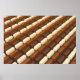 Viele Reihen mit dunklen, weißen und milchschokoladenartigen Pralinen
