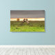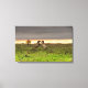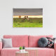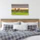 Leinwand von zwei wilden Konik Pferden, die im Nationalpark Oostvaarders Plassen in den Niederlanden bei Sonnenuntergang prangen.