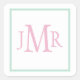 Präppy Minze grün & rosa Monogramm Quadratischer Aufkleber
