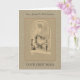 Dies ist eine wunderschöne Priesterordination, Erste Messe oder Jubiläumskarte mit einem eigens entworfenen Bild auf der Vorderseite des Priesters, das die Eucharistin am Altar hält und Jesus von oben sieht. Eine hellbraune Spitze ist ein Hintergrund. Alle Schriftart und Texte können geändert werden.