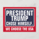 Präsident Trump hat sich selbst entschieden. Wir wählen die USA. Repräsentant Demings erinnerte uns daran, dass "Präsident Trump sich selbst entschieden hat", als er sich entschied, sein Büro zu missbrauchen, um einen persönlichen Gefallen aus der Ukraine zu erhalten. Wir haben alle eine Wahl zu treffen. Werden wir Donald Trump weiterhin rücksichtslos über unsere Regierung hinweglaufen und zum imperialsten Präsidenten werden? Die meisten von uns werden nicht an vorderster Front stehen, aber wir können dies nutzen, um unseren Nachbarn und gewählten Vertretern lassen, dass wir nicht einem Mann unterworfen sein werden, der will, König zu sein. Vergessen Sie nicht, sich mit Ihrem Vertreter und Ihren Senatoren in Verbindung zu setzen. Beschreibung des Entwurfs: Der Text "Präsident Trump hat sich selbst entschieden. Wir wählen die USA" in allen Kaps weißen Schriftart über 5 Linien. Die Wörter auf einem dunkelblauen Rechteck mit einem weißen Rand auf einem roten Hintergrund.
