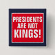 Präsidenten sind keine Könige, aber wenn sie für alles, was als "offizielle Tat" gilt, volle Immunität vor Strafverfolgung haben, macht ein Präsident wie ein König. Egal welches Party Sie unterstützen, wenn Sie Patriot sind, sollten Sie keinen unrechenschaftspflichtigen Präsidenten mit den Powern eines Königs gewollt haben. Beschreibung des Designs: Der Hintergrund ist tief in Mitternachtsblau. Hinzu kommt ein rotes Quadrat mit einem weißen Rand mit den Worten: "Präsidenten sind keine Könige!" in allen Kappen in einem weißen serifenlosen Schriftart.