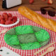 Prato de papel verde falsa grama ou folhas de coqueiro, as imagens simulam gramado ou emaranhado de folhas de coqueiro ou samambaia, as alterações de tonalidade das cores e 'colagem' dos quadros formam um efeito diferente e lindo.