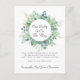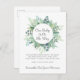 Eine elegante Schwangerschaftsankündigung mit einem hübschen Blumenrahmen in Aquarellfarben mit Eukalyptus-Blätter und einer modernen, trendigen Schriftzeichen-Schrift.
