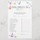 Machen Sie die 'Mama to be's' Dusche, um sich an dieses niedliche "price is right" Baby Duschspiel zu erinnern! Mit einem schlichten Hintergrund, grauen Schmetterlingen in Aquarellfarben und einer bearbeitbaren Textvorlage.