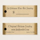 Brauchen Sie Preisschilder für Artikel in Ihrem Shop oder für eine bevorstehende Show oder Veranstaltung? Diese eleganten goldenen Tags passen auf die Rechnung! Vollständig anpassbar mit Ihrem Firmennamen, Ihrer Website-Adresse und Ihrer Straßenadresse. Der schwarze Kreis zeigt an, wo man mit einem Lochstechen anschlagen sollte - man drückt ihn aus und rutscht ein Band oder eine Zeichenfolge durch das Ende, um die Tags an der Ware anzubringen. Geben Sie Ihre Preise, wo auf der Vorderseite des Tags angegeben, oder anpassen Sie die Tags mit Preisen bereits auf ihnen hier - Ihre Wahl. Verlass die Tags auf der Ware, und dein Kunde kommt mit einer Mini-Visitenkarte raus, um sie darauf aufmerksam zu machen, wie du dich wieder findest!