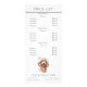 Stellen Sie Ihren Kunden die perfekte Mischung aus Eleganz und Funktionalität mit dieser charmanten Preisliste-Rack-Karte vor, die exklusiv für Heimtierzuchtbetriebe konzipiert wurde. Diese Preisliste zeigt alle angebotenen Leistungen, mit einem bezaubernden Aquarelldesign mit einem bezaubernden Poodle mit Bläschen aus einem Seifenbad. Ein raffinierter Stil, der das Wesen von verwöhnten Haustieren, die wie Königin behandelt werden, einfängt. Ob an der Rezeption oder im gewartet Bereich, diese auffällige Preisliste informiert nicht nur die Kunden, sondern garantiert ihnen auch, dass ihre geliebten Haustiere die größtmögliche Sorgfalt und Aufmerksamkeit erhalten.