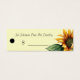 Brauchen Sie Preisschilder für Artikel in Ihrem Shop oder für eine bevorstehende Show oder Veranstaltung? Diese eleganten Tags mit einer großen Sonnenblume passen auf die Rechnung! Vollständig anpassbar mit Ihrem Firmennamen, Ihrer Website-Adresse und Ihrer Straßenadresse. Der schwarze Kreis zeigt an, wo man mit einem Lochstechen anschlagen sollte - man drückt ihn aus und rutscht ein Band oder eine Zeichenfolge durch das Ende, um die Tags an der Ware anzubringen. Geben Sie Ihre Preise, wo auf der Vorderseite des Tags angegeben, oder anpassen Sie die Tags mit Preisen bereits auf ihnen hier - Ihre Wahl. Verlass die Tags auf der Ware, und dein Kunde kommt mit einer Mini-Visitenkarte raus, um sie darauf aufmerksam zu machen, wie du dich wieder findest!