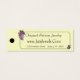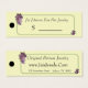 Brauchen Sie Preisschilder für Artikel in Ihrem Shop oder für eine bevorstehende Show oder Veranstaltung? Diese eleganten Tags mit lila Akzenten der Blume passen auf die Rechnung! Vollständig anpassbar mit Ihrem Firmennamen, Ihrer Website-Adresse und Ihrer Straßenadresse. Der schwarze Kreis zeigt an, wo man mit einem Lochstechen anschlagen sollte - man drückt ihn aus und rutscht ein Band oder eine Zeichenfolge durch das Ende, um die Tags an der Ware anzubringen. Geben Sie Ihre Preise, wo auf der Vorderseite des Tags angegeben, oder anpassen Sie die Tags mit Preisen bereits auf ihnen hier - Ihre Wahl. Verlass die Tags auf der Ware, und dein Kunde kommt mit einer Mini-Visitenkarte raus, um sie darauf aufmerksam zu machen, wie du dich wieder findest!