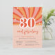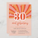 Fügen Sie Ihrem dreißigjährigen Party mit diesen Einladungen zum 30. Geburtstag eine trendige, inspirierte Atmosphäre hinzu. Mit einem lebendigen Retro-Design und einer leichten Anpassung an alle Party-Details. Pfirsich, rosa und roter Hintergrund wirl mit dem Text: "30 und fabelhaft! Nehmen Sie an den Feierlichkeiten zum (Namens-)Geburtstag teil".