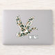 This monogrammed vinyl sticker features a flying mallard duck in camouflage print of brown and dark green. Personalize the monogram with your choice of initials. Great for monogrammed gift bags and party favors.