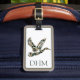 This fun monogrammed luggage tag features a flying mallard duck in camouflage print of brown and dark green. Personalize the monogram on the front with your choice of initials and your special text on the back. Perfect for personalized gift bags and party favors.