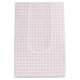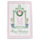 Diese Geschenktasche hat eine Preppy Chinoiserie Design mit einem grünen Bambusrahmen mit einem Weihnachtskranz mit einem rosa Bogen und zwei Topiaries in Chinoiserie Pots. Der untere Teil hat grünen Text, der "Frohe Weihnachten" sagt. Sie können mit einem Namen und Ihrem Initial personalisieren. Der Rücken hat ein koordinierendes Gingham-Muster.