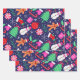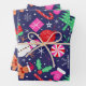 Preppy Christmas Characters mit Bogen auf dunkelbl Geschenkpapier Set