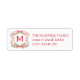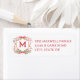 This Christmas return address has a preppy design featuring a Christmas crest with mahjong tiles. You can personalize with a name and address.