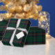 This design is a tartan or plaid pattern featuring a festive color palette, primarily consisting of cheery red, deep forest green and navy blue, overlaid with thin intersecting lines of white and gold. The overall effect is sophisticated and traditional, with the dark greens and reds making it highly suitable for use as Christmas wrapping paper, offering a classic and subtly festive aesthetic.