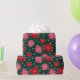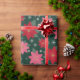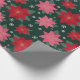 Wrap your holiday gifts in this festive Christmas paper featuring pink and red poinsettias, scattered snowflakes, and a dark pine green background