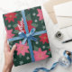 Preppy Christmas Poinsettias & Snowflakes on Green Geschenkpapier