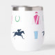 Dieser isolierte Weinkeller ist perfekt für einen Tag bei den Rennen geeignet und zeichnet sich durch eine besondere Silhouette aus: Eishockeyseide, Reitpferde-Silhouette, Pferdeschuh, Julep-Tasse und Pferdetrophie. Das Muster ist in einer lebendigen Farbpalette.