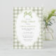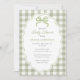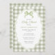 Preppy Doodle Frame Green Gingham Bow Baby Shower Einladung
