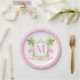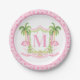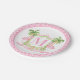 These plates have a preppy design featuring a Christmas crest with palm trees and flamingos wearing Santa hats.