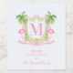 This Christmas wine label has a preppy design featuring a Christmas crest with palm trees and flamingos wearing Santa hats. The bottom has pink text that says "Merry Christmas." You can personalize with a name, year and your initial.