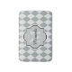 Fügen Sie Ihrem persönlichen Stil eine elegante Atmosphäre hinzu, mit diesem feinen, grau-grauen Raute-Muster, das mit einem gürtlichen Monogramm-Rahmen versehen ist. Personalisieren Sie dieses moderne graue harlequin-Design, indem Sie den Namen und die mit Monogramm Initiale jeder stilvollen jungen Frau hinzufügen.