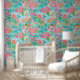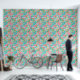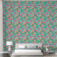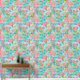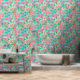 Ein nahtloses, preppy-Muster mit botanischen Elementen, wie Blume, Blätter und Gras, in Babypink, Koralle, Dunkelrosa und Grün auf einem minzigen grünen Hintergrund. Das Design ist handbemalt und verbindet sanfte und lebendige Farbtöne zu einem frischen und stilvollen Effekt.