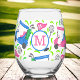 Preppy Monogram Golf Pink Blue Golf Cart Muster Weinglas Ohne Stiel