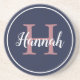 Preppy Monogram Navy Blue Calligraphy Name Getränkeuntersetzer