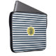 Navy und weiß gestreifter Hintergrund mit Gold oval Monogramm Halter. Maßgeschneiderte Schriftart-Monogramme machen eine großartige persönliche Touch.